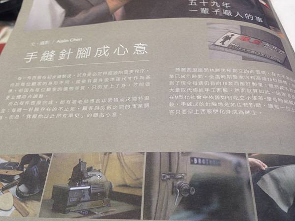 指導老師:楊裕富 博士 組員: B10533306 葉宇智(訪問) B10533307 林彥甫(記錄) B10533308 陳姿蓉(記錄) B10533309 楊鈞琪(攝影) B10533310陳潔縈(記錄) B10416066蔣更昀(記錄) 訪談店家:勝利西服號 店家地址:雲林縣斗六市太平老街上 訪談時間:105年11月14日 Q 開業幾年了? A 50年 Q 主要的客源是? A 各個年齡層的人都有,主要有兩大客群,一種是特別瘦小,沒辦法直接買成衣的人,一種就是金 字塔頂端的人。 Q 大致上是使用什麼布料? A 外裡有羊毛和棉質兩種,內裡有不織布、布和羊毛,不織布和布的作業時間較短也較簡單,只需 五分鐘,但羊毛需要慢慢縫,作業時間長達一天。